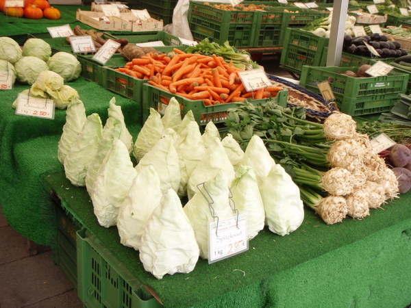 野菜や果物の他、ハムやソーセージなろいろんなものが売られています。