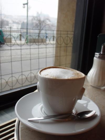 1881年創業の老舗カフェ、昔は有名人や文化人が座った(と思われる)窓際でヴァルタヴァ川を眺めながらのティータイムは貴重な時間。