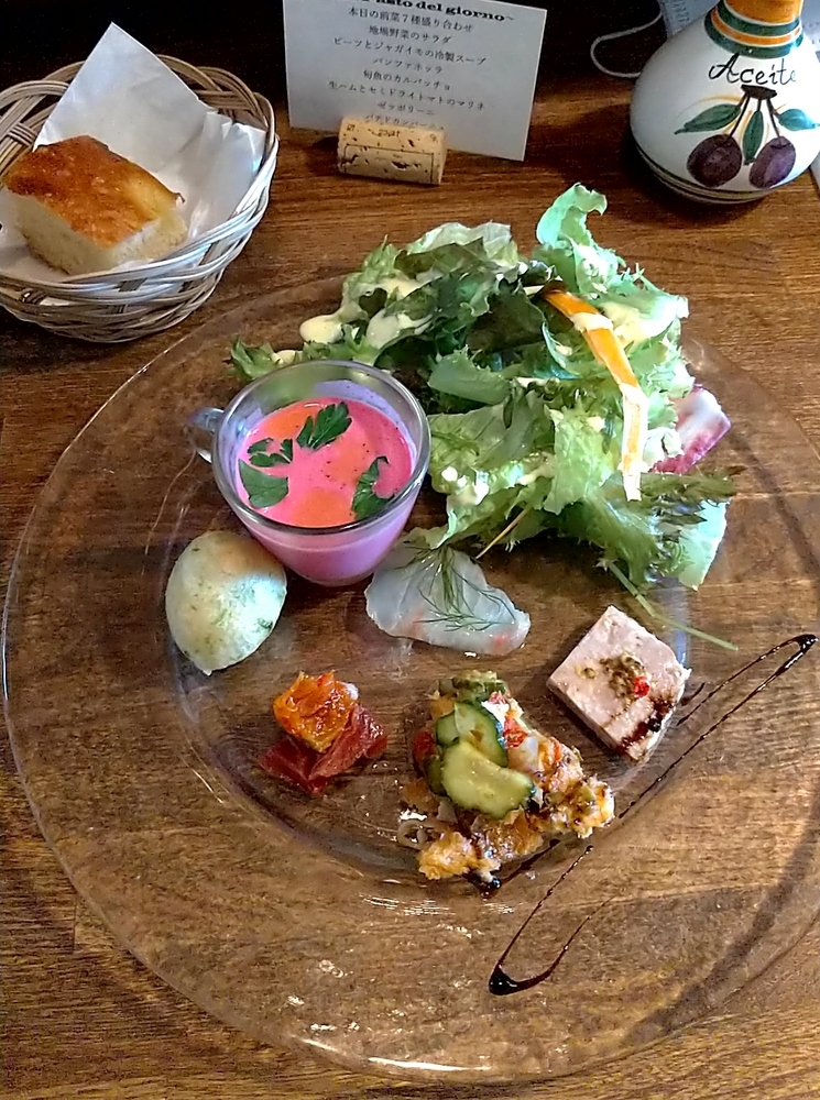 前菜7種の盛り合わせは、目で見て楽しめる、ボリュームのある一品。