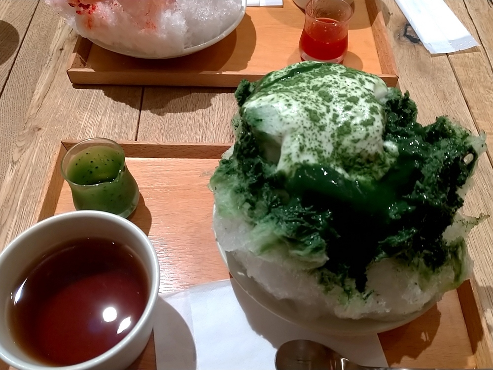 オーダーした抹茶のかき氷は、抹茶のシロップが濃厚でおいしかったです。
