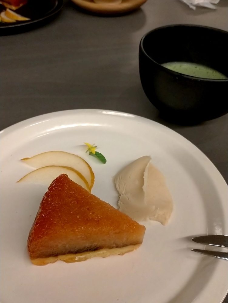 タルトタタンはジューシーでおいしかったのですが、抹茶はちょっと薄めでした。