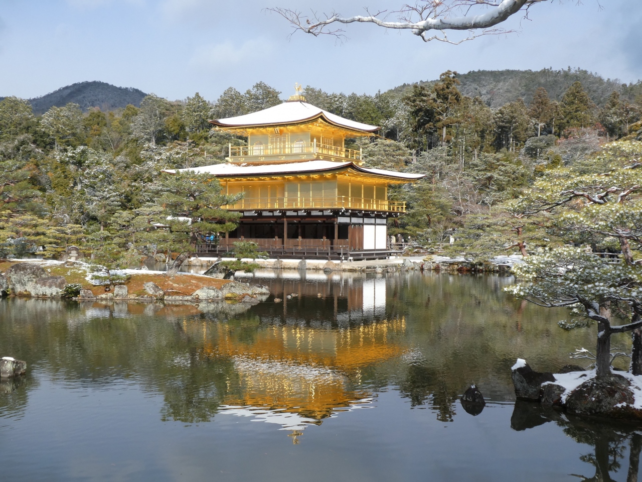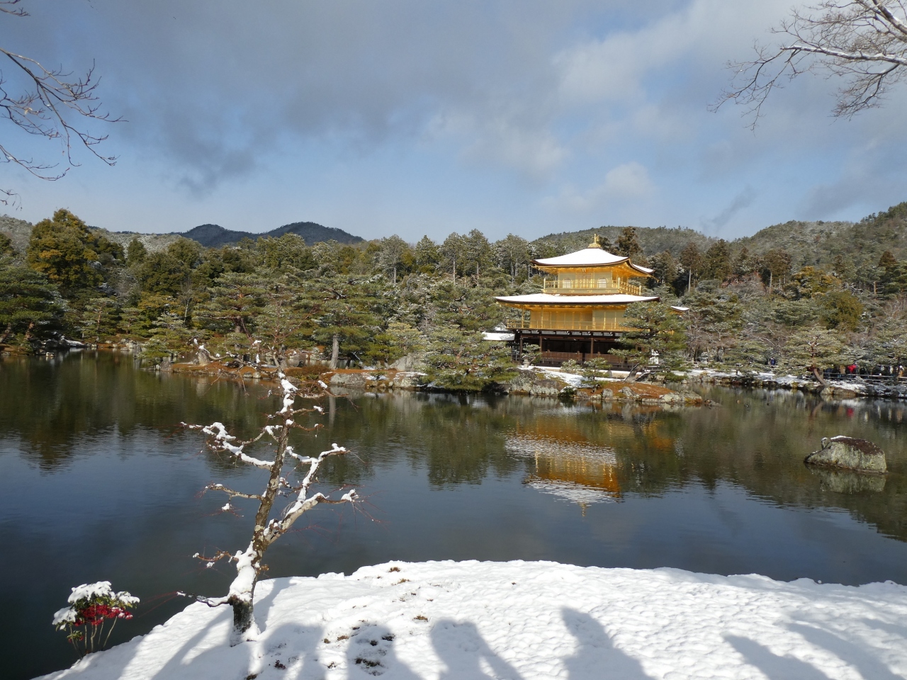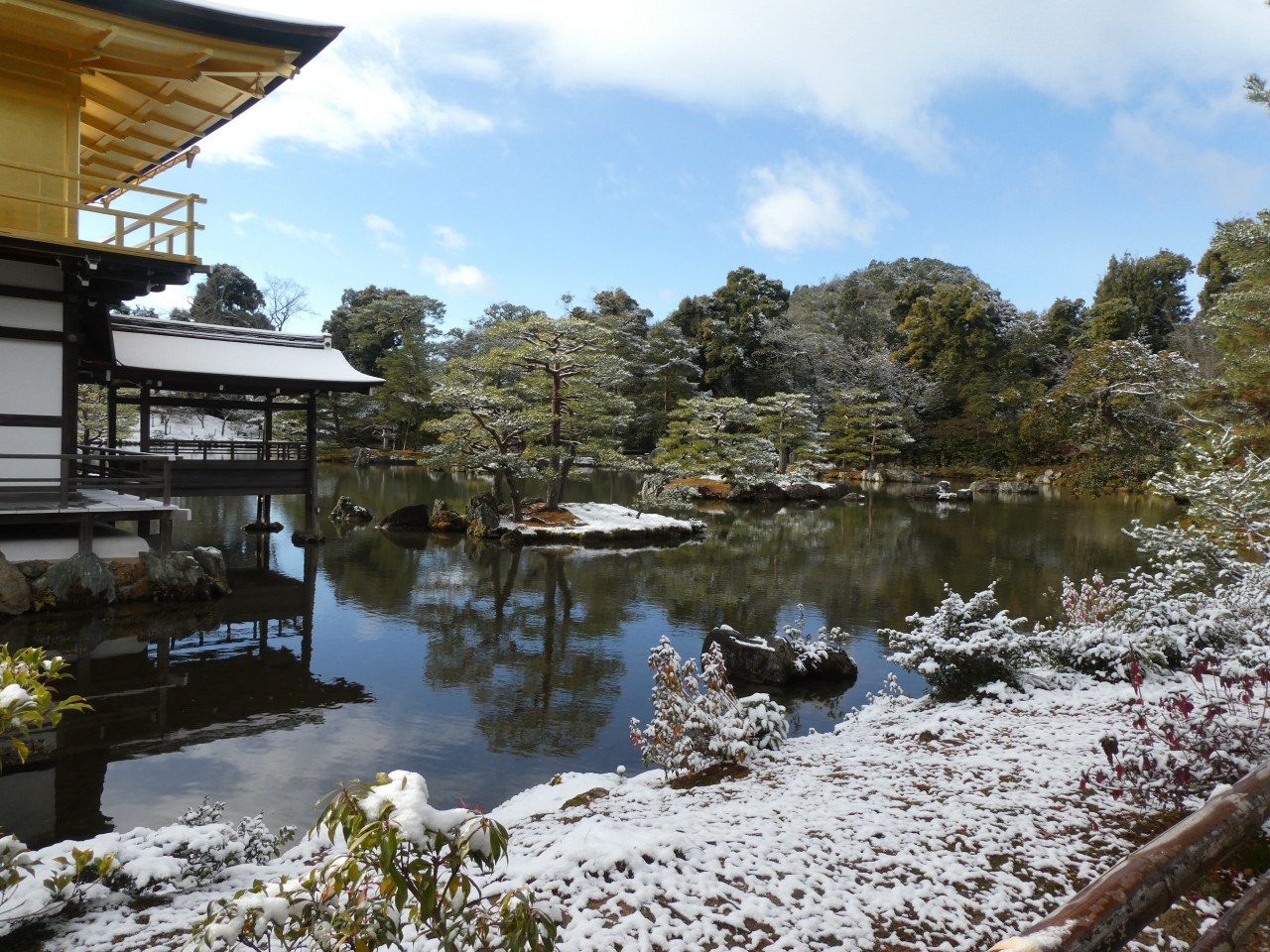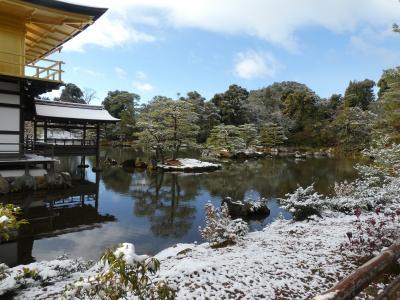 学生の時に京都に住んでいましたが、雪は降ってもなかなか積もらないので、雪が積もった金閣寺が見られるのはそんなに多くありません。