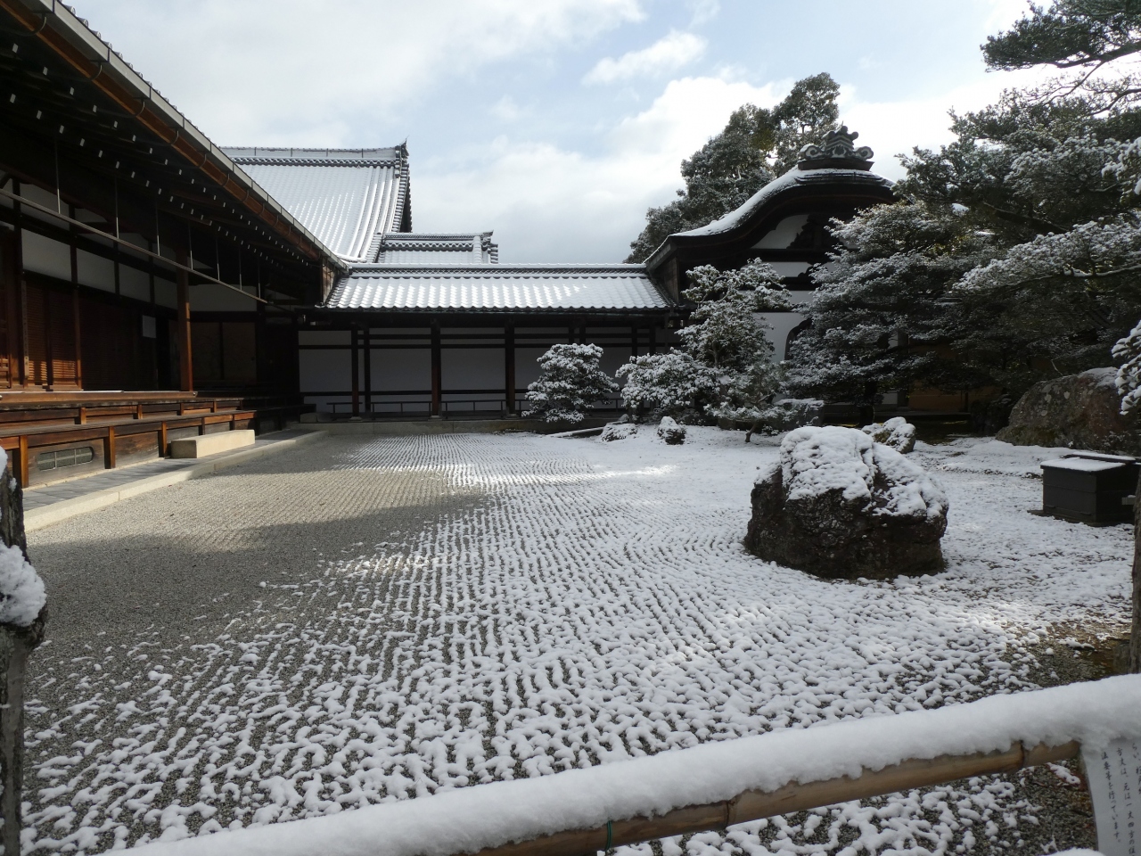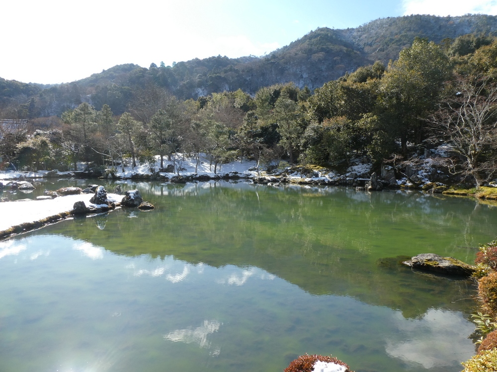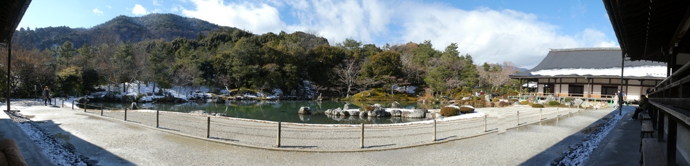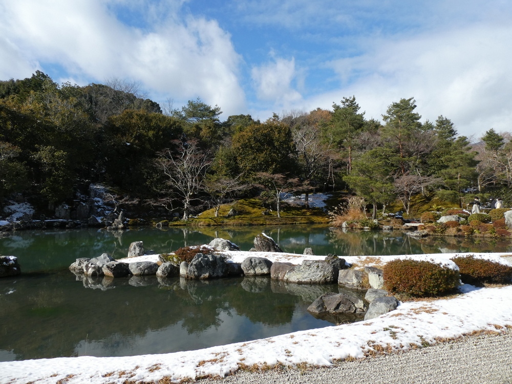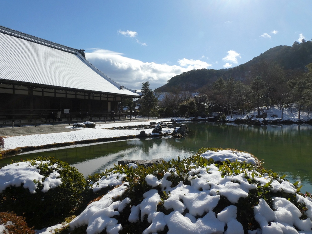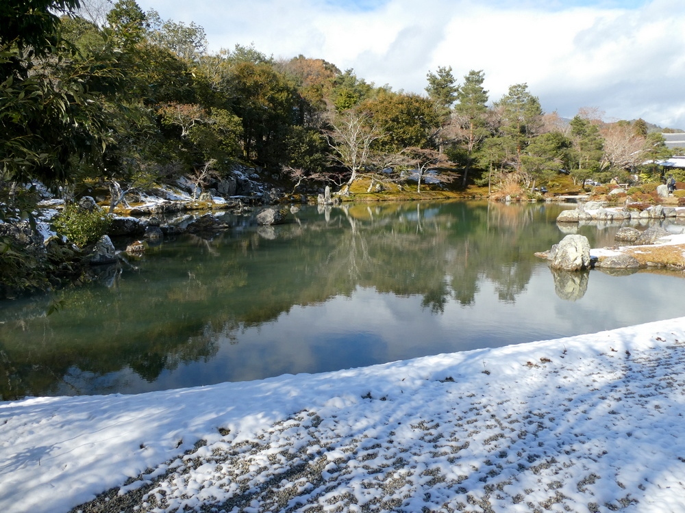 12月末に訪れた際に、珍しく朝雪が積もっていたので金閣寺から天龍寺へ。