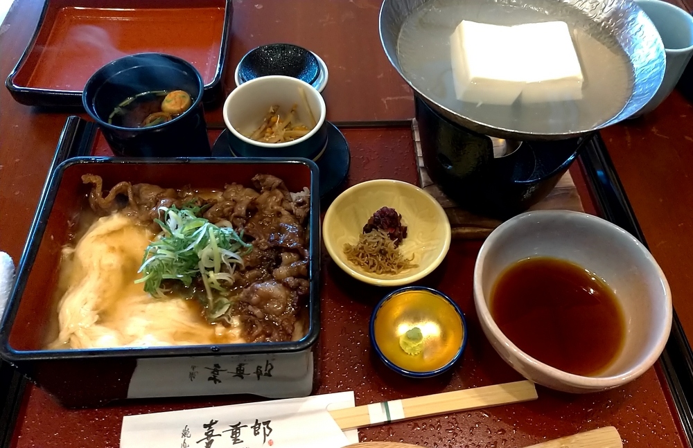 オーダーしたのは和牛焼き肉重(湯葉あんかけ)と湯豆腐。