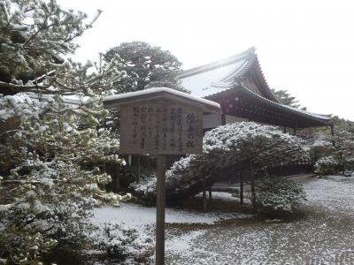 朝起きたら雪が積もっていたので、溶ける前に金閣寺へ。