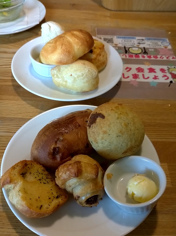 焼き立てパンはお代わりが無料。