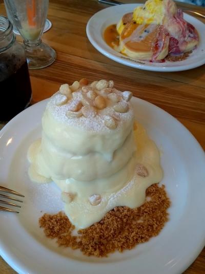 オーダーしたマカダミアのパンケーキは濃厚なソースがたっぷりと掛かり大粒のマカダミアんナッツが。
