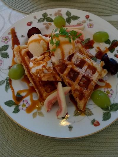 オーダーしたシフォンケーキが品切れだったので代わりにワッフルにしましたが、外はカリッと、中はふんわりとしていておいしかったです。