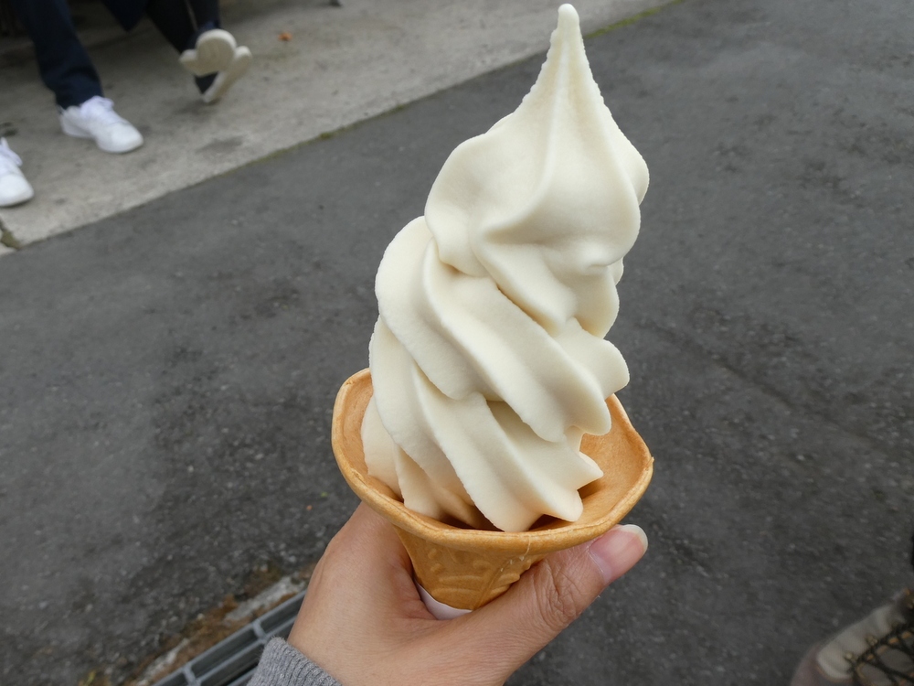 せっかくなのでフルーツのソフトクリームを。行った日はリンゴのソフトクリームでした。