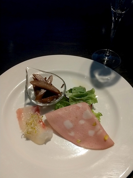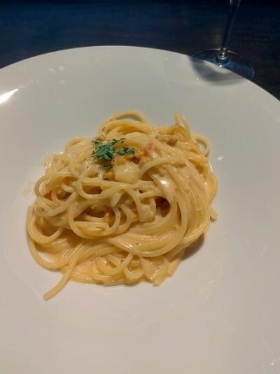 前菜3種の盛り合せ、ウニのトマトクリームパスタ、豚のグリエにデザートで半額の2500円ほどでしたが、元のお値段を出す感じではなかったです。