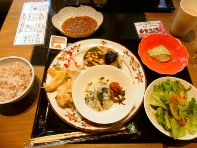 野菜がたっぷりで、いろいろな種類が少しずつ取れ、サーモンの照り焼きもボリュームがありおいしかったです。- 旅行時期