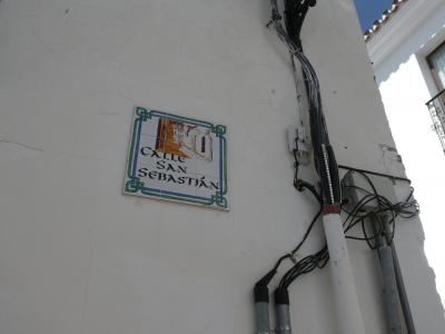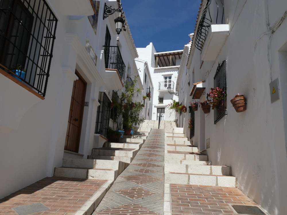 白い建物に青い空、そして家々に飾られた花がとても美しく絵になる通りでした。