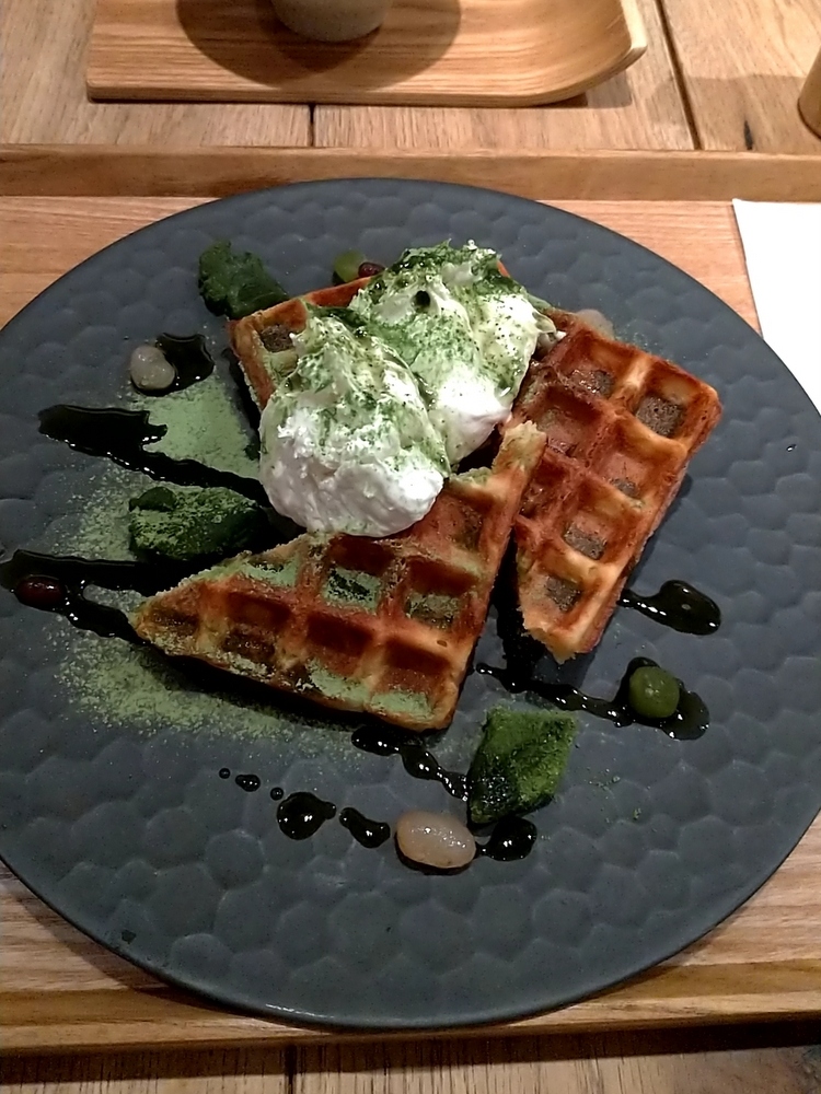 抹茶のティラミスワッフルは、ふんわりとしたワッフルの上にたっぷりとクリームが載っていましたが、クリームはふわっと軽めで、もたれることなく食べられました。- 旅行時期