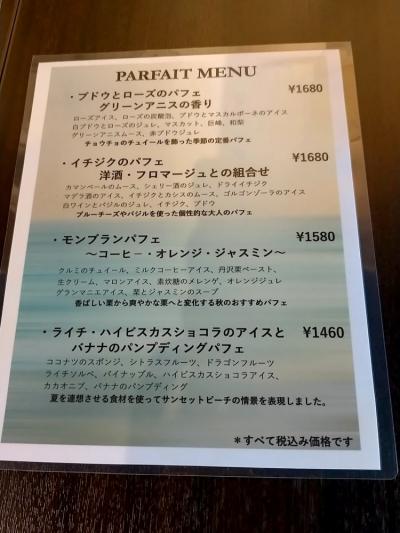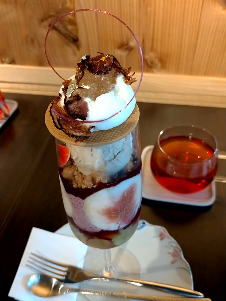 オーダーしたのはイチジクのパフェ 洋酒・フロマージュの組み合わせ。