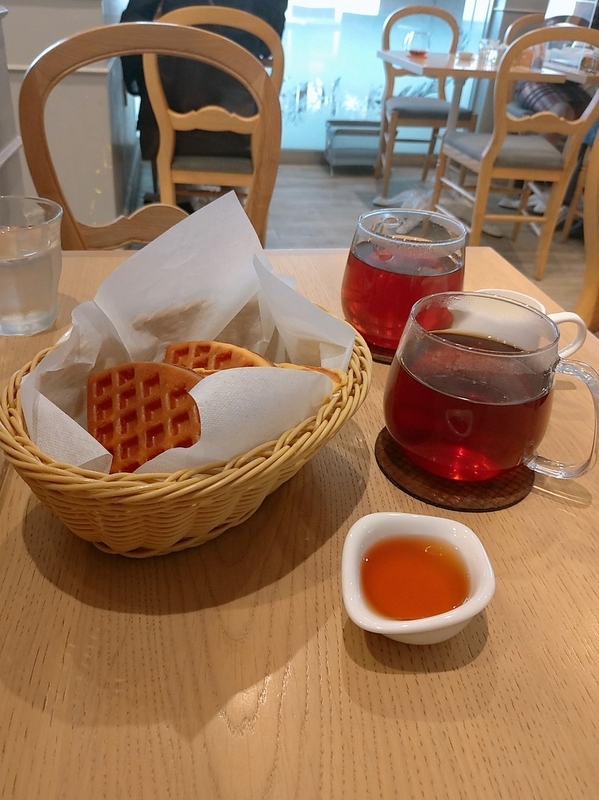 ワッフルが最初に出てきました。温かかったら、もっとおいしかっただろうな。