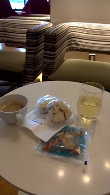 食べ物はほとんどなく、またドリンクも限られていてとてもさみしいラウンジ。