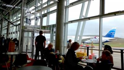 窓が大きく明るくて解放感があり、離着陸する飛行機がすぐ目の前に見れます。