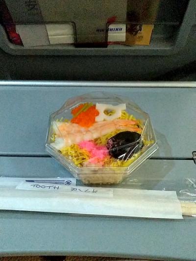 短距離線だったので機内食はありませんでした。USBの線はついていませんでした。