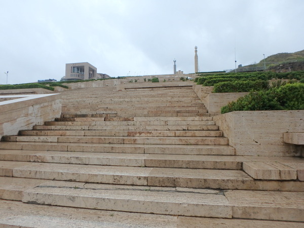 一本道で、遠くからでもぽつんと、山の淵に立っているモニュメントが見えます。