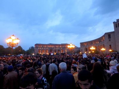 ちょうどデモの最中だったので、夕方過ぎから深夜までは大勢の人が集まり、演説やクラクションがすごかったです。