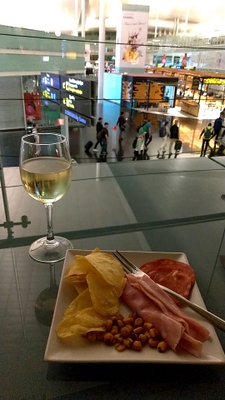 深夜の出発だったので、ほとんど食べるものはなく、ワインとつまみを楽しみました。