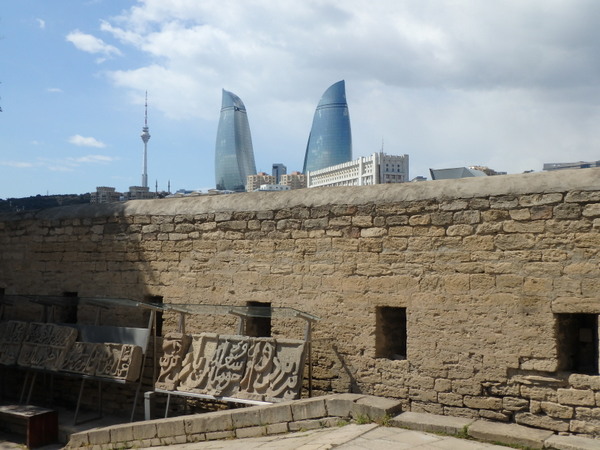 城壁に囲まれた街並みから、フレームタワーが見え、新旧のコントラストが面白いです。