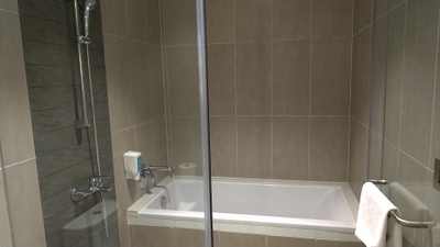 シャワーのみの部屋で水圧が弱く、温度が上下するのが困りますが海外だから仕方ないのかも。