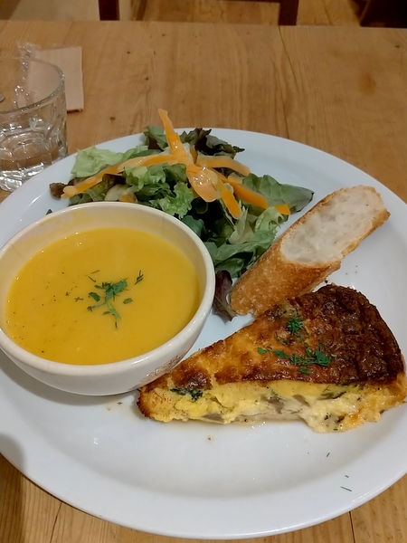 いつも頼むキッシュランチ、スープとキッシュの内容は日によって変わります。