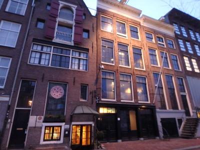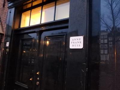 普通だったら素通りしてしまいそうな黒い細い建物に、小さな字でアンネフランクンの家の表示。
