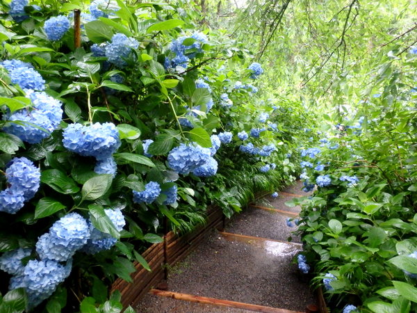 濃い青い色のアジサイが雨に濡れてとてもきれいでした。- 旅行時期