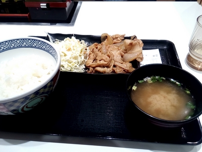 牛丼が苦手なので豚生姜焼きをオーダー。出てくるのが早くてびっくりしました。
