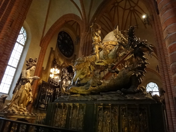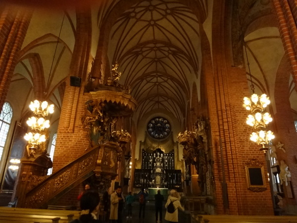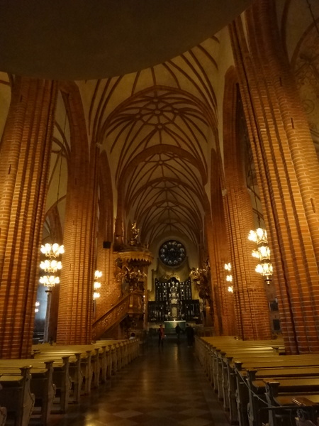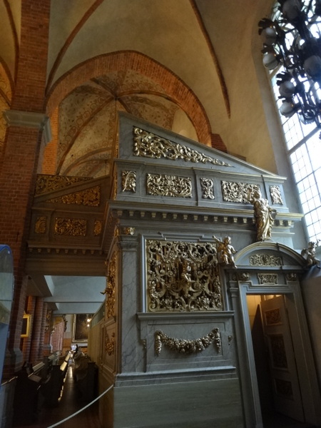 大聖堂はストックホルム最古の教会だそうで、中は落ち着いた白と茶色がベースの内装ですが細かな彫刻が施されていて、簡素なんだけどすごく手が込んだ彫刻が施された祭壇や像があります。