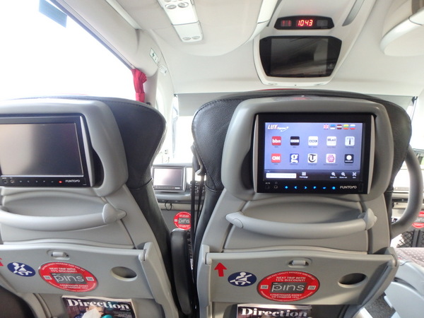 備え付けのコーヒーも無料で飲め、また座席には飛行機のようにスクリーンがついていて暇つぶしにはぴったり。