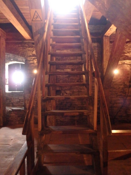 エレベーターはなく、ひたすら階段を上がるのですが、段差が高めで歩きにくく、最後は折れそうな木製の階段。