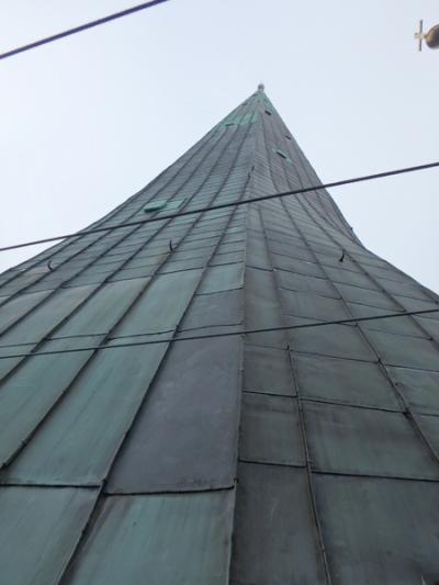山の手のトームペア城の前に立つ、ロシア正教の教会。