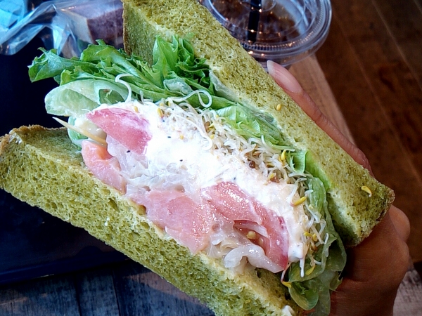 サーモンマリネのほうれん草のパンがまたおいしい♪