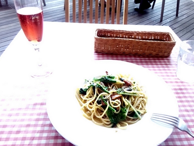 オーダーしたのは海辺のペペロンチーノとロゼワイン。