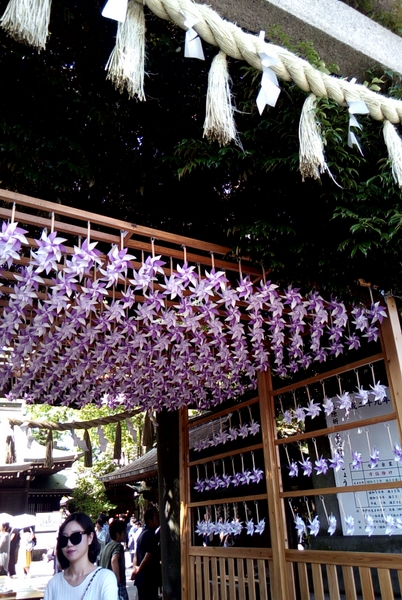 友人の希望で行った、神社。神社に着いてみると、上から無数の風車が。
