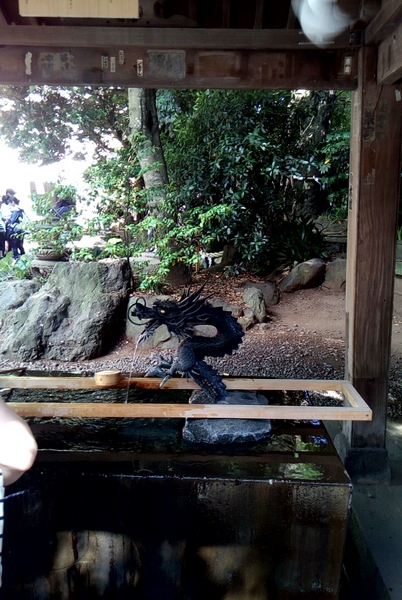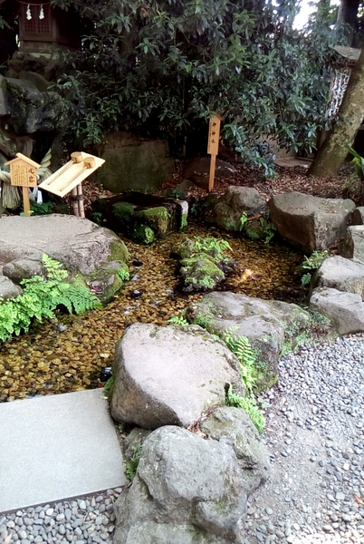 ガイドに従って、息を3回吹きかけて、体に撫でつけてから、「祓えたまえ、清えたまえ」と唱えながら先ほどの川に流します。