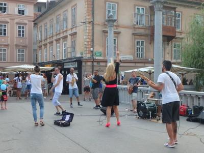私が行った時にはちょうど橋の上でパフォーマンスが行われており、人だかりができていました。