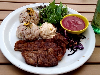 ポークチョップは塩味が濃すぎでしたが雑穀米と一緒に食べるとちょうどいい感じで、着いてきたケチャップは不要でした。