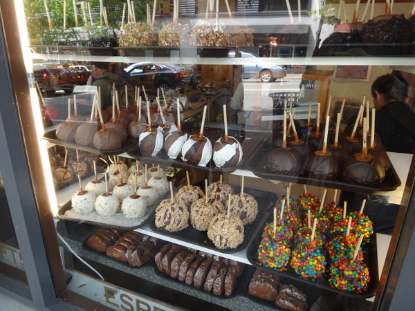 日本でいうリンゴ飴ならぬ、アップルチョコがたくさん並んでいてショーウィンドウに目が釘付け。