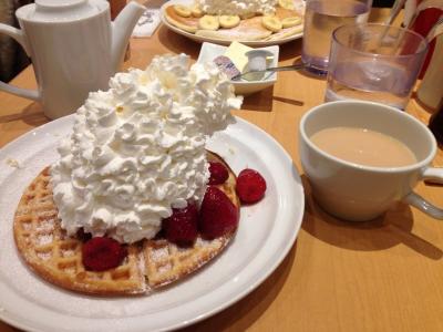パンケーキが有名ですが、5枚とボリュームたっぷりだったのでワッフルにしてみました。