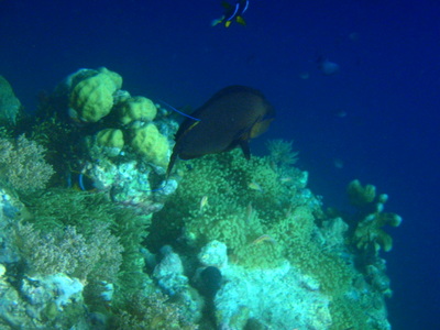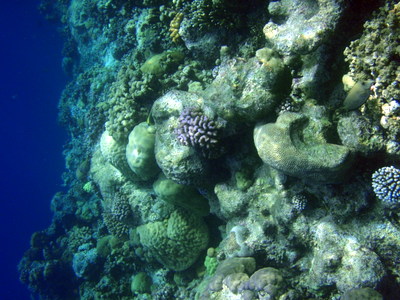 珊瑚の生える浅瀬から水深600mを超えるドロップオフ。