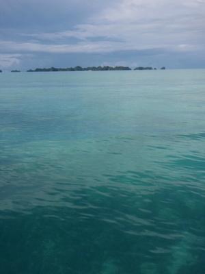 しばらくボートを走らせてると、透明だった海水がうそみたいに透明感のないターコイズに。