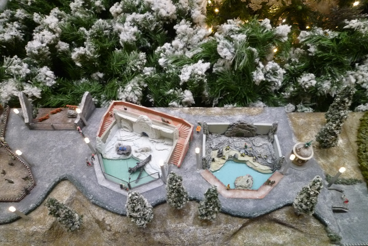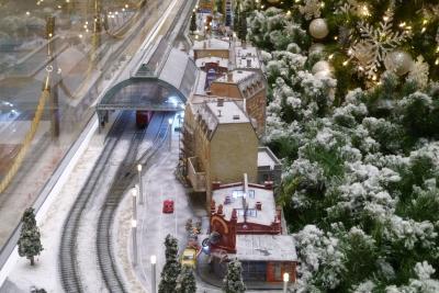 トレッサ横浜の、クリスマス向けのジオラマが展示されている。