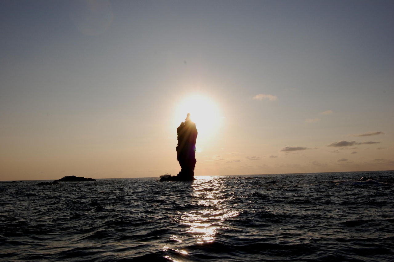 隠岐の島の北西に位置するローソク島は高さが約20mあり、海から独立に屹立している。ローソクが海に立っているようであり、夕陽が沈む時に、ローソク島の先端に陽がかかり、まるでローソクに灯が灯ったように輝く。自然が成す素晴らしい瞬間である。