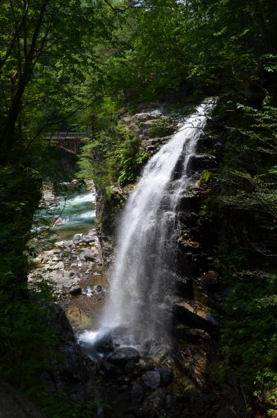 鬼怒川沿いの渓谷は、エメラルドグリーンの川の流れと、虹がかかる滝、自然豊かな花、カエルや蝶まで満喫できます。