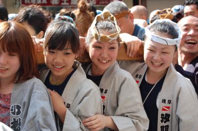 下町育ちの私は、浅草まで行かなくても地元のお祭りに神輿が出ていた。浅草まで行くことは無かった。