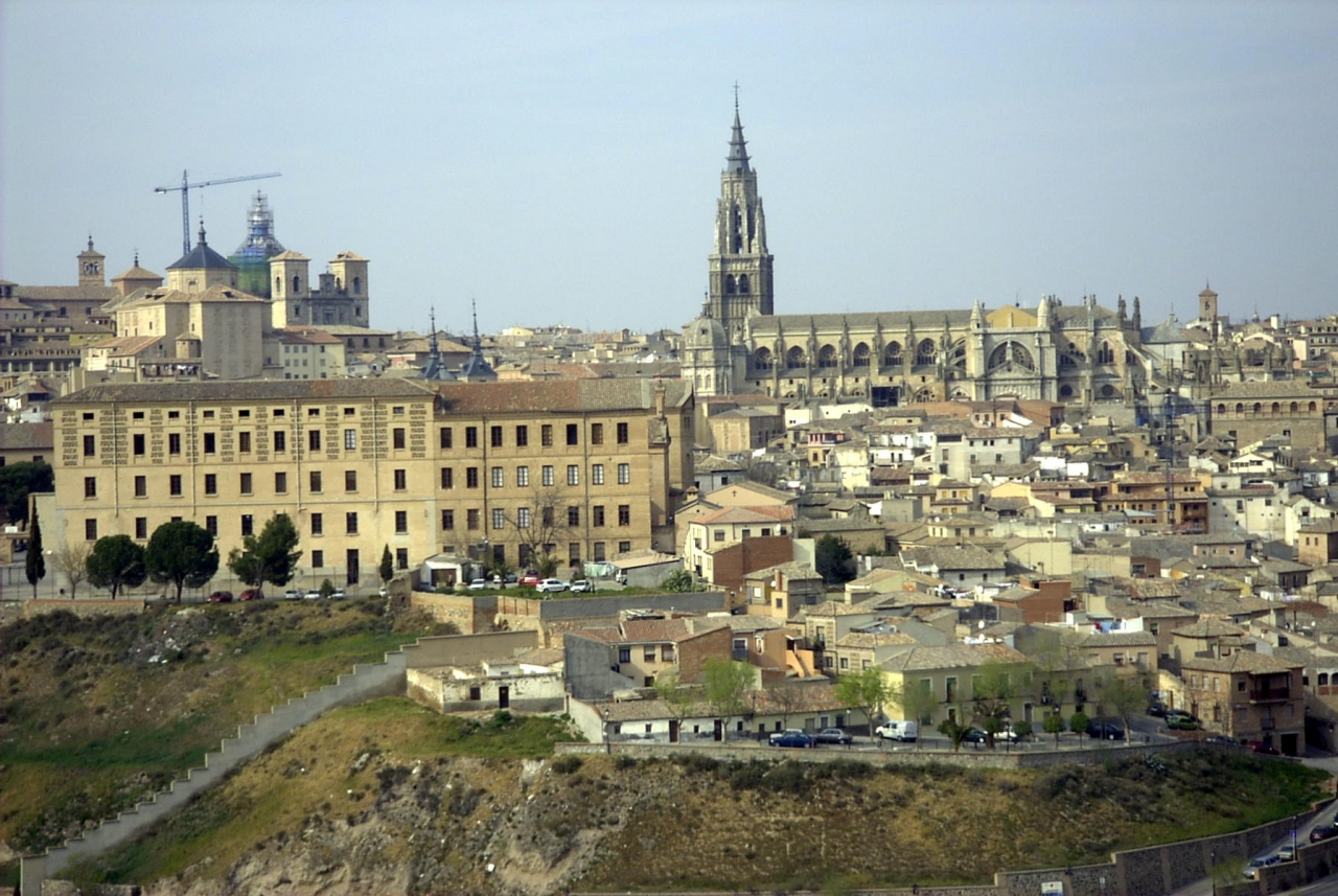 トレドはマドリッドから南に70Kmで2時間足らず行き、タホ川に囲まれた中世都市だ。日本で言うなら奈良や京都のような所で、紀元前190年頃にローマに征服され歴史が古い。8世紀のはじめ頃になるとローマの次にイスラム教徒によって支配権を奪われてしまう。スペインはキリスト教、ユダヤ教、イスラム教は共存していた時代である。16世紀になるとトレドは統一されたスペイン帝国の都として繁栄していった。バスはトレドの街には直接入らずに対岸の展望台からトレドの街を一望する。箱庭のような小さな街全貌が見えて、おとぎの国みたいで息を飲む美しさだ。
